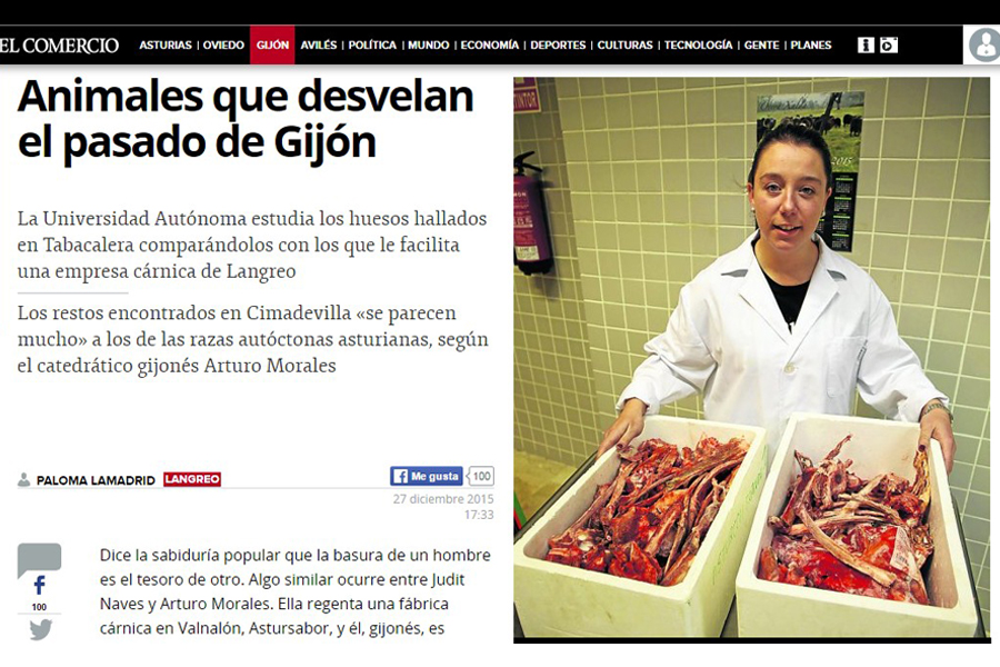 Pero no pensó que “Llazana”, “Pepita”, “Morena” y todo su rebaño podían servir también para la investigación. Desde hace un par de meses envía los huesos de los corderos que despieza al laboratorio de Arqueozoología de la Universidad Autónoma de Madrid. Desde allí se pusieron en contacto con esta joven emprendedora solicitando su colaboración para un proyecto pionero que estudia los restos de fauna hallados en yacimientos arqueológicos, uno de ellos el de la Tabacalera de Gijón
