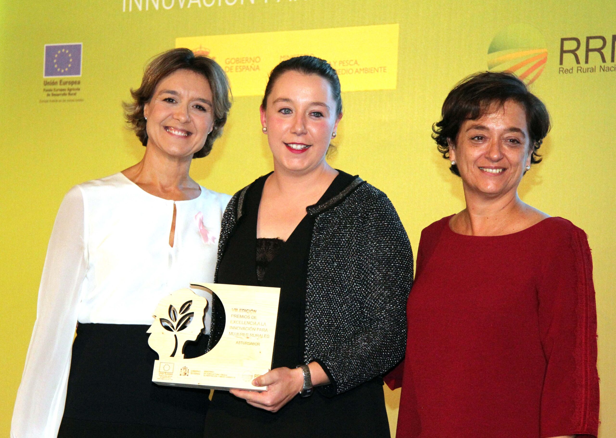 Con lágrimas en los ojos, según reconoció ella misma, y con un notable aplomo, la joven reguerana Judith Naves recibió ayer en Madrid el premio nacional a la excelencia en la diversificación de la actividad agraria, unos galardones que por octavo año concede a las mujeres rurales el Ministerio de Agricultura. Naves, fundadora y directora de Astursabor, ha sido premiada por saber unir la innovación y la tradición en el concepto de su empresa, que ofrece productos elaborados en base a carne de ganaderías autóctonas, criadas en extensivo, según destacó la ministra, Isabel García Tejerina, “en libertad y sin piensos”.Con sólo 24 años, Judith Naves ha conseguido colocar los productos gourmet Astursabor en más de 40 tiendas en toda España, y ofrece además catering a domicilio. Junto a ella, recibieron galardones en esta edición Maite Sánchez Hernández, de Goizueta, por Domiña, una iniciativa que trabaja en el norte de Navarra con una raza autóctona bovina en peligro de extinción; La Gaceta de Salamanca, por difundir la actividad de las mujeres ganaderas, y se concedió un premio extraordinario a al colectivo Ganaderas en Red.