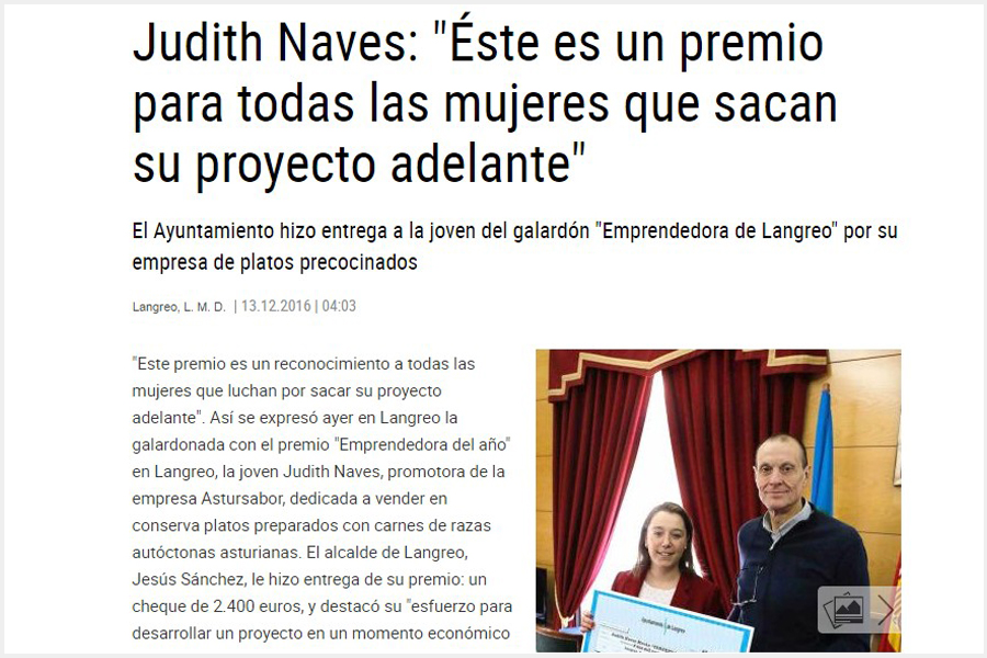 En Noviembre de 2016, se celebró en el Teatro Palacio Valdés de Avilés los Premios AJE Asturias 2016 donde se pone en